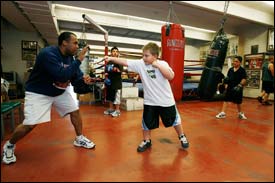 Joshua Benjamin, a black, movie-star handsome 29-year-old college educated professional prospect, is currently Lewis’ prized pupil and unofficial leader of the gym floor. Benjamin, no stranger to professional trainers, assessed of Lewis, “Gene’s a very laissez-faire type of trainer. He’s not naturing, but he’s very caring. You have to prove yourself to Gene that you’re going to be dedicated, but he’s there for you day in and day out. He can take a guy off the street with no coordination and give him ability.”